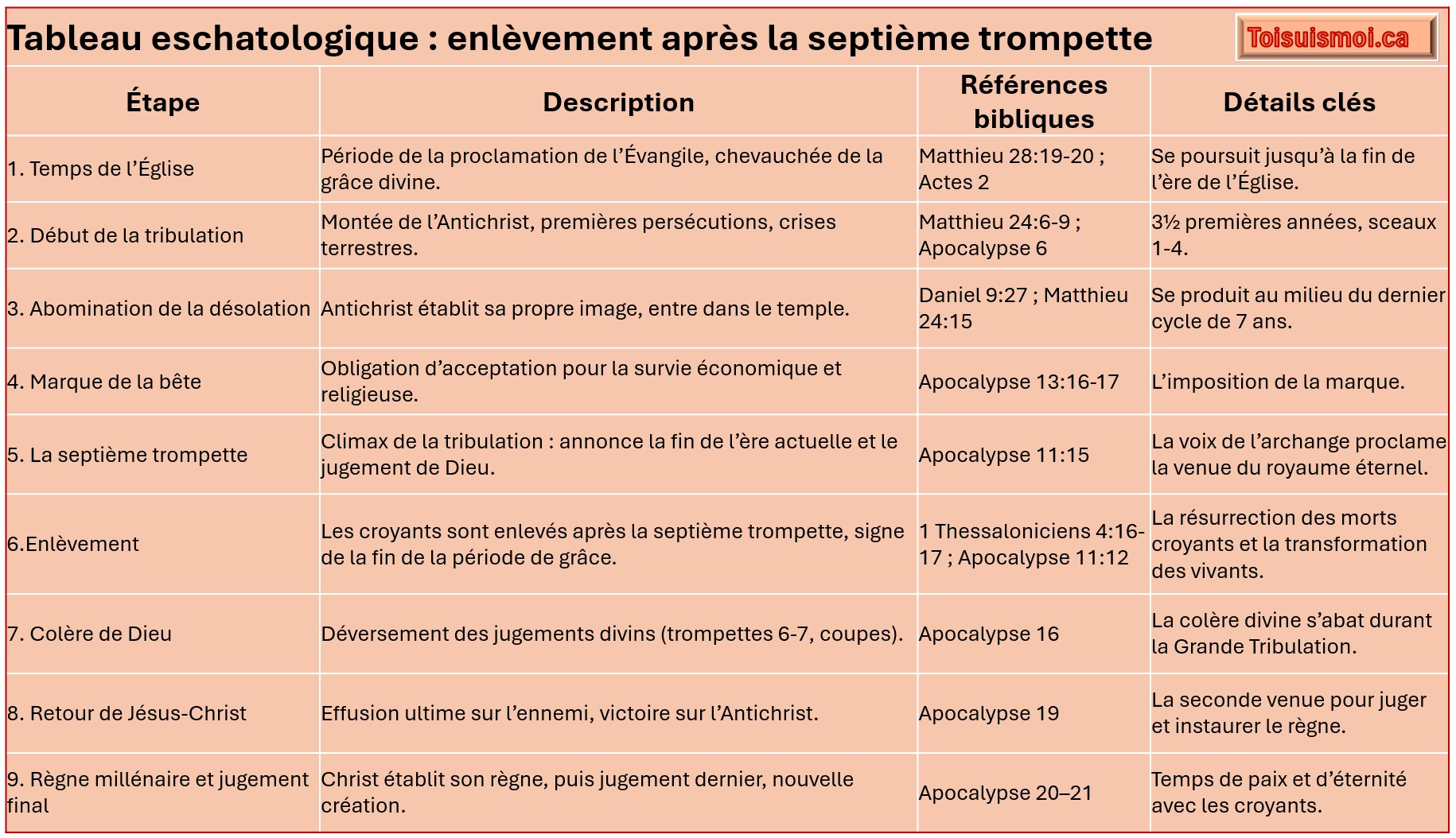 Prévision du déroulement apocalyptique avec enlèvement Pré-colère à la septienne trompette