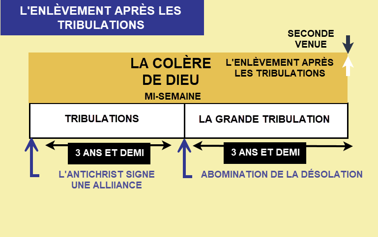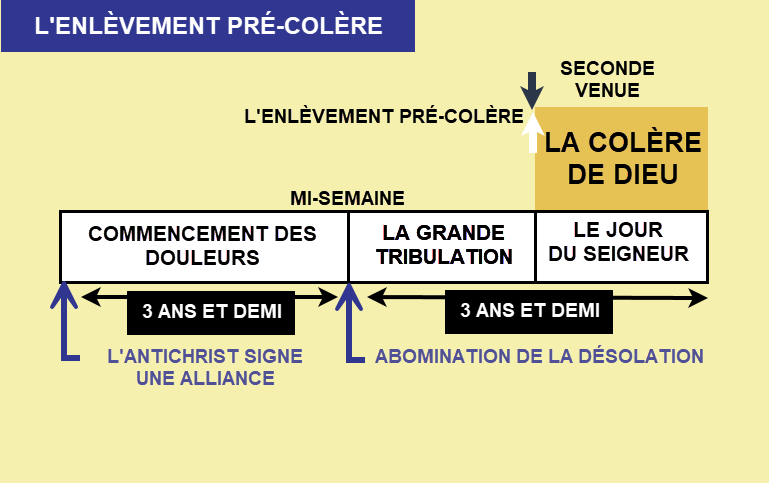Nous prions que cet article aura su vous procurer un aperçu de la chronologie de base des derniers sept ans de l’ère actuelle de l’histoire de l’humanité, et un aperçu en particulier de l’enlèvement pré-colère de l’Église. Nous avons écrit sans intention d’être accusatoires, ni de vouloir tirer des sonnettes d’alarmes non nécessaires, ou encore de nourrir un sentiment de peur au sein de l’Église. Des gens, bons et pieux, peuvent entretenir et entretiennent des points de vue différents en ce qui concerne le moment de l’enlèvement.
